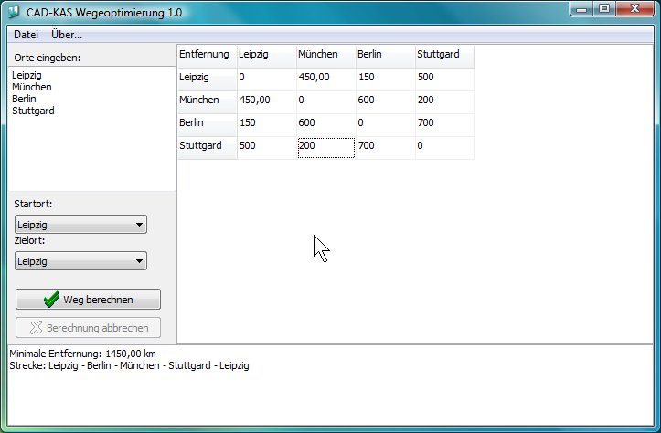 Größe: KB Preis der Vollversion: 19.99Kategorie: Office Beschreibung: Optimieren Sie Ihre zu fahrenden Wege. Das Programm ist vorallem interessant für Schneedienste, Brötchendienste, Zeitungsdienste, Briefdienste, Botendienste, Kurierdienste u.v.m. Geben Sie alle Wegpunkte, die Sie abfahren müssen mit Namen ein. Start- und Endpunkt können definiert werden. Geben Sie nun die Entfernungen zwischen jeweils zwei Punkten in das Programm ein. Die Entfernungen merkt sich das Programm dauerhaft. | |||
